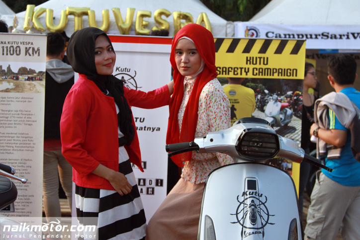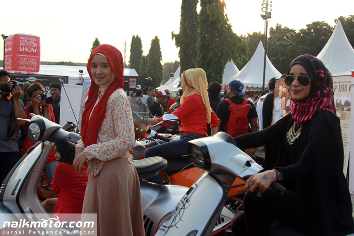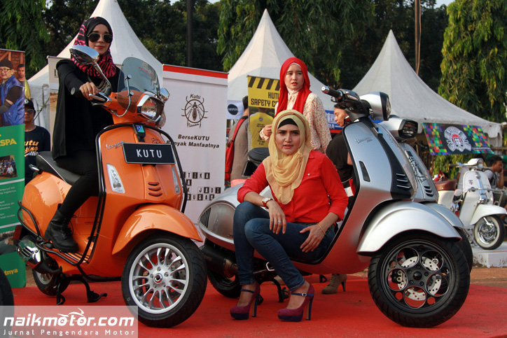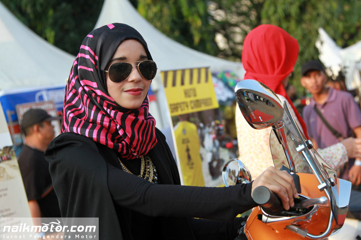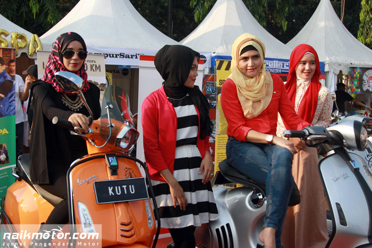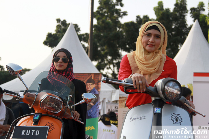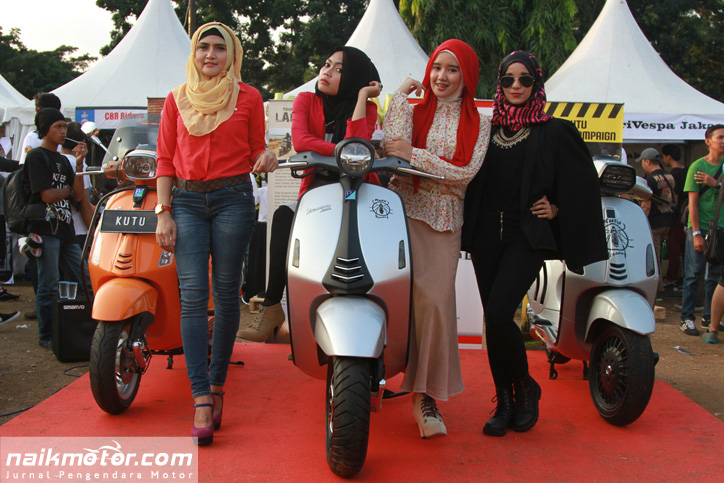 Jakarta (naikmotor) – Ada yang unik dari Komunitas pengguna Vespa satu ini. Dimana banyak Komunitas yang menampilkan model berbusana seksi, Kutu Vespa justru menghadirkan model berhijab saat berlangsungnya Tumplekblek 2015, Minggu (10/5).